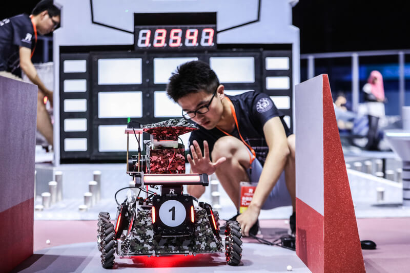 RoboMaster机甲大师赛由共青团中央、全国学联、深圳市人民政府联合主办,大疆创新发起并承办,是全球规模最大的机器人赛事之一。与常见的机器人技能竞赛不同,RoboMaster采用对战形式,由参赛队伍自行设计并制作不同种类的机器人,以攻击对方基地为目标,在实战中检测参赛选手的技术水平。