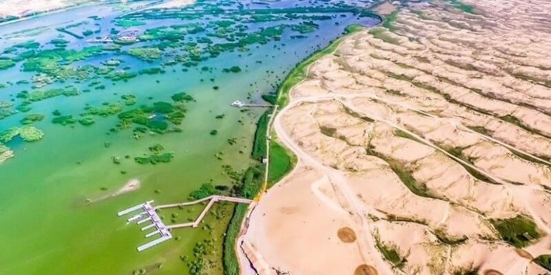 芦苇荡的尽头就是沙丘,这里有你所能想到的所有关于沙漠的娱乐项目。把你的视角升到更高处,你会对大自然的精妙赞叹不已,翠绿的芦苇点缀在湖面,并将绿意延伸到沙漠的边缘。假如大地是一张画布,沙漠、芦苇和湖水就是安然静置于这画布中的最美搭配。