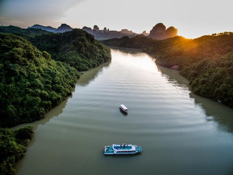 作为广东省首个世界自然遗产,灵秀的丹霞山赤壁披着蓊郁的森林作外衣,从观感上和山石裸露、浓墨重彩的西北丹霞大相径庭。以往在这个老牌景区,最受欢迎的游览方式也许是乘索道上山,俯瞰倒映在锦江之中的奇峰怪石,或干脆乘竹筏在江上漂流。