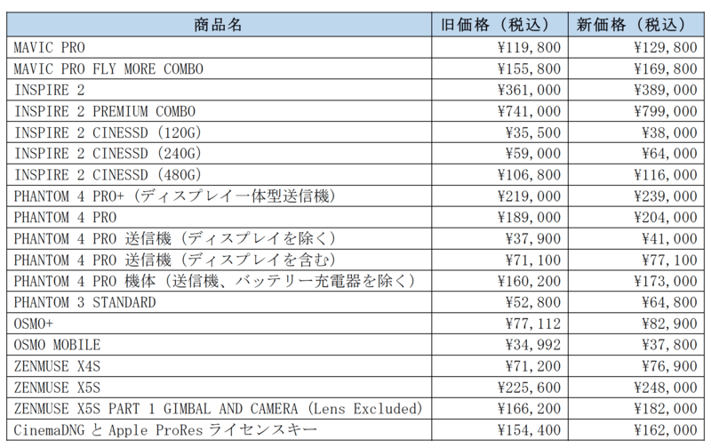 DJI公式オンラインストアにおける価格改定の詳細については、下記をご参照ください。