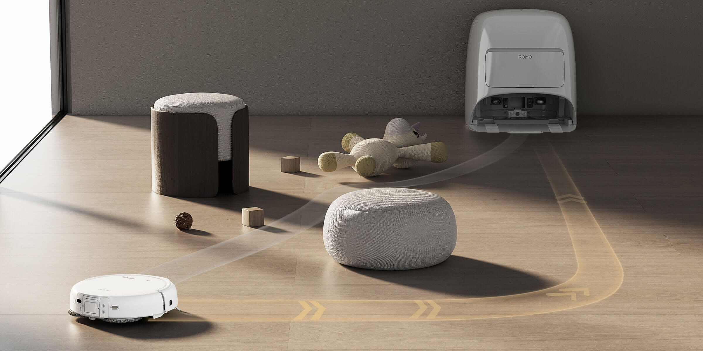 ROMO Highlight: Leveraging advanced visual algorithms and LiDAR, ROMO excels in complex environments. It identifies and bypasses floor clutter that would trap standard robots, ensuring it can finish the job even if you forgot to tidy up the dog toys beforehand.