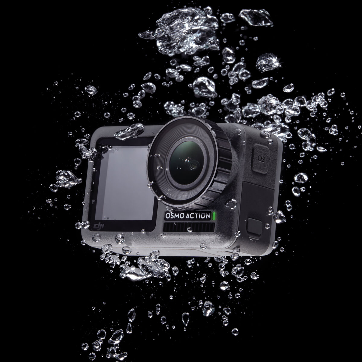 Sporting a watertight seal and a hydrophobic coating on the back touchscreen, Osmo Action is waterproof at depths of up to 11 meters, making it the perfect underwater companion.1